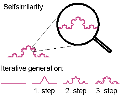 1. A Curva de Koch é uma curva plana, definida recursivamente. Sua lei de formação é descrita da seguinte maneira: Considere um segmento de tamanho 1. Divida esse segmento em 3 partes iguais, remova o segmento do meio. Em seu lugar, coloque 2 segmentos de mesmo tamanho do segmento removido de modo a formar a parte de cima de um triângulo. Obtivemos 4 segmentos de mesmo tamanho. Agora, repetimos o processo, recursivamente, para cada um dos 4 segmentos. A soma dos comprimentos será cada vez maior.