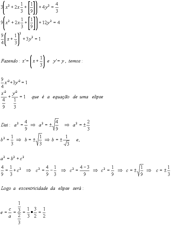 faça-mos os cálculos para provar que a equação dada é uma elipse :